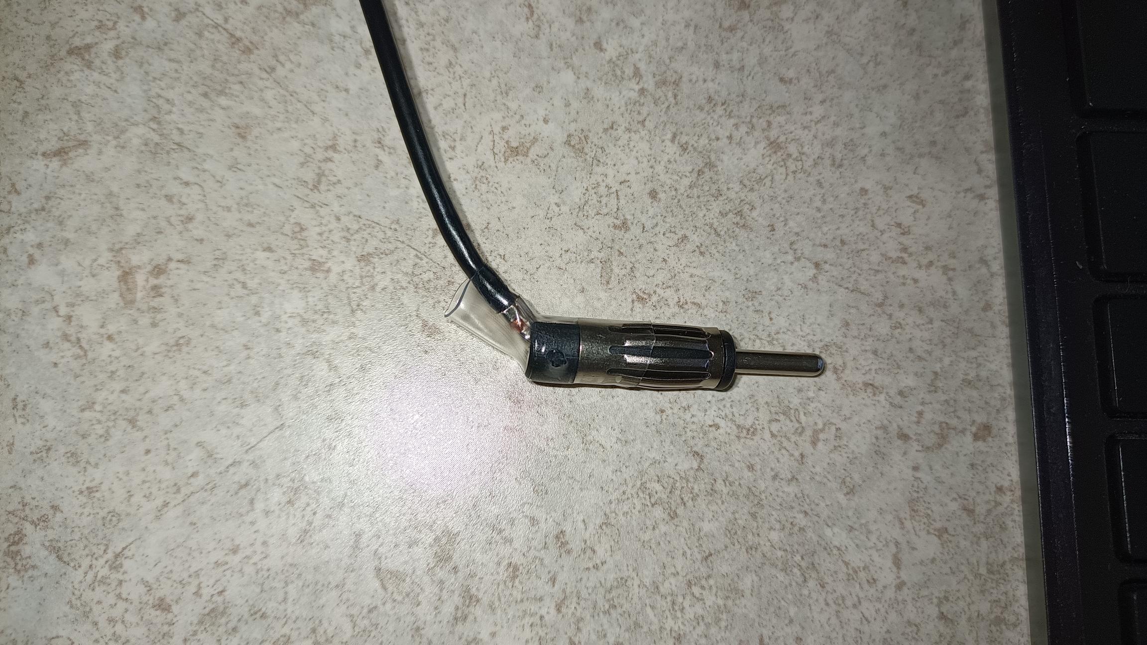 The head unit didn't come with a radio antenna. I purchased this antenna adapter from Amazon. But there was a problem. The head unit's chassis didn't have enough clearance to accept the antenna plug, so a modification was necessary.
